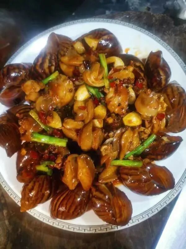 蜗牛肉与壳分别过油,姜蒜、辣椒与香料爆香,再加入青红线椒圈与蜗牛肉同炒,倒入啤酒烧制,香气在厨房内升腾,回荡。白玉蜗牛的肉很大一坨,一口一只,麻辣鲜香,咀嚼起来Q弹,似螺肉又更肥厚,令人上瘾。