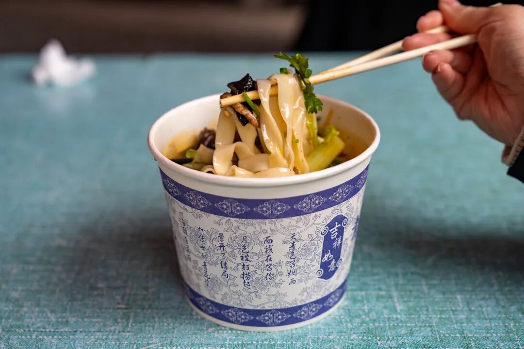 开了20年的老店——春丽牛肉粉面馆,手擀面确实招牌,90%的人都是奔着手擀面而来。一口热乎的面,加上几片黑木耳,就着浓郁的萝卜排骨汤底,就是家的滋味,面食质朴,却承载着满满的温暖与热情。