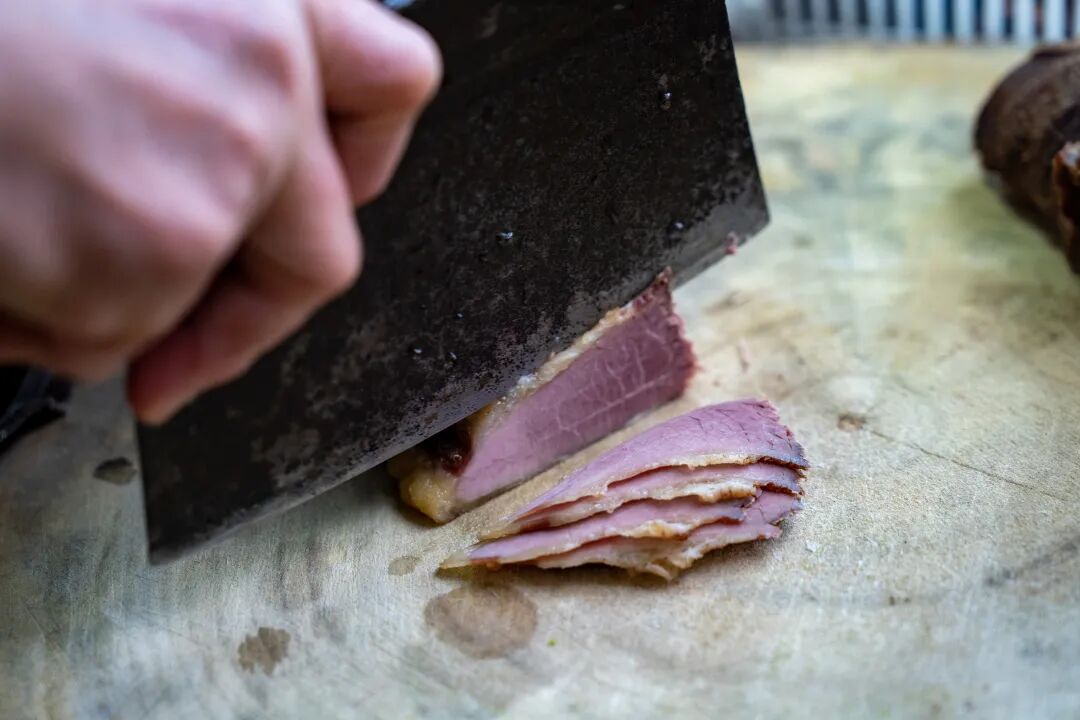 多多牛肉面用的则是最家常的调料,追求的是一种大味至淡,大道至简的味道。肉眼可见的大块牛肉,肉质软烂,咀嚼之间却又能渗透丝丝汤汁,秘诀则是将牛肉切成片再进行卤制。