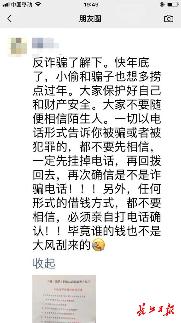 事发后小李在朋友圈中宣传防骗知识 通讯员孙逊供图
