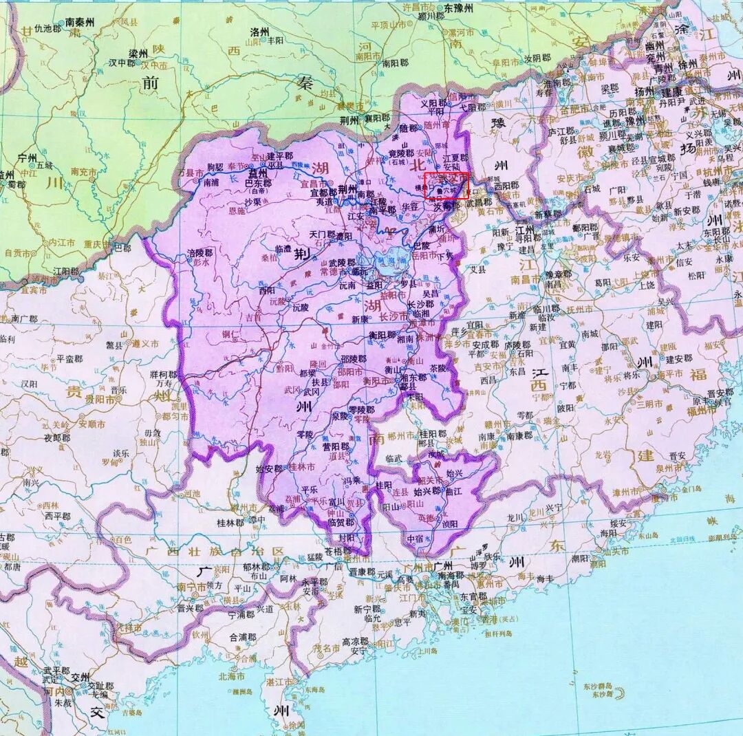▲东晋荆州地图,今武昌在当时属于江夏郡