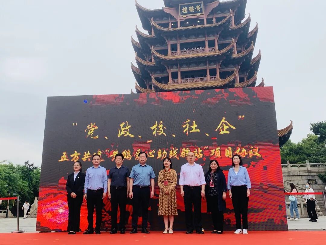 ▲“党、政、校、社、企”五方签署“黄鹤爱心助残驿站”项目协议