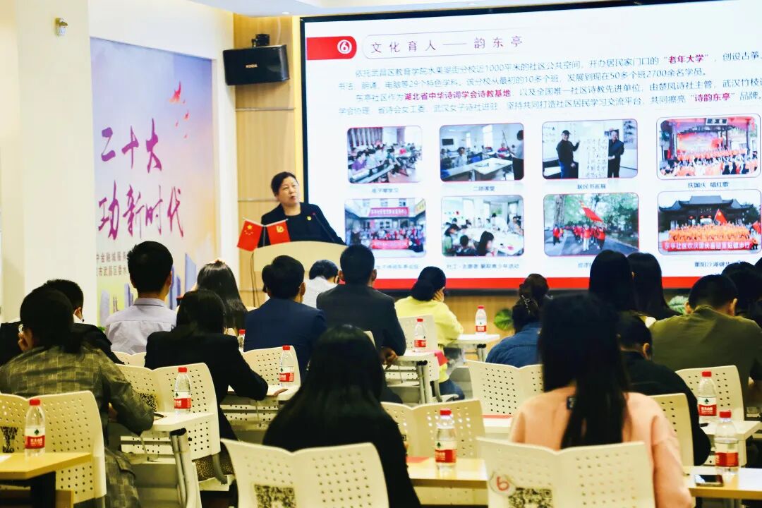 水果湖街道党工委宣讲团成员、东亭社区党委书记王学丽以《创新“1314”工作法 共同缔造幸福东亭》为题讲授党课,带领大家开展深化共同缔造、推进党建引领基层治理体制机制创新试点工作的专题学习。