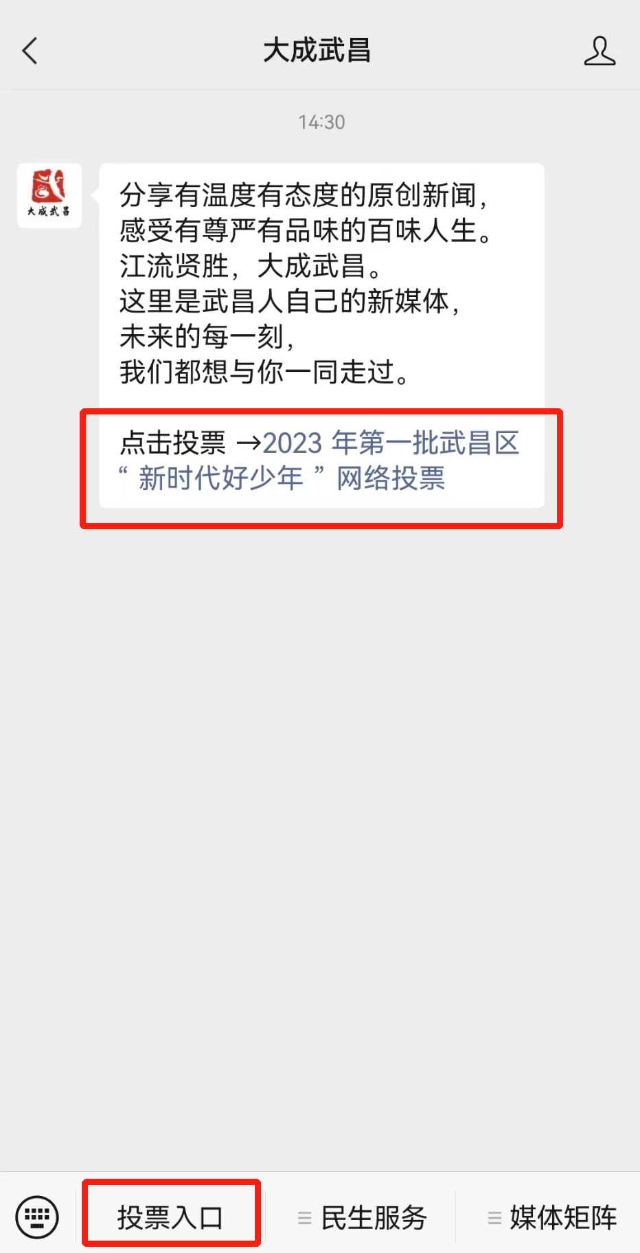 2、方法一:点击底部菜单栏“投票入口”或自动回复中的蓝字即可进入专题页面,为您支持的“好少年”点赞。